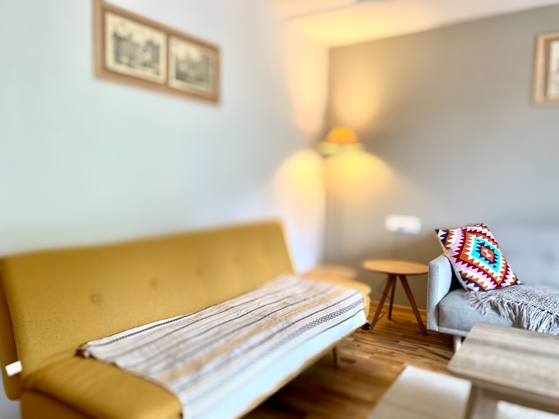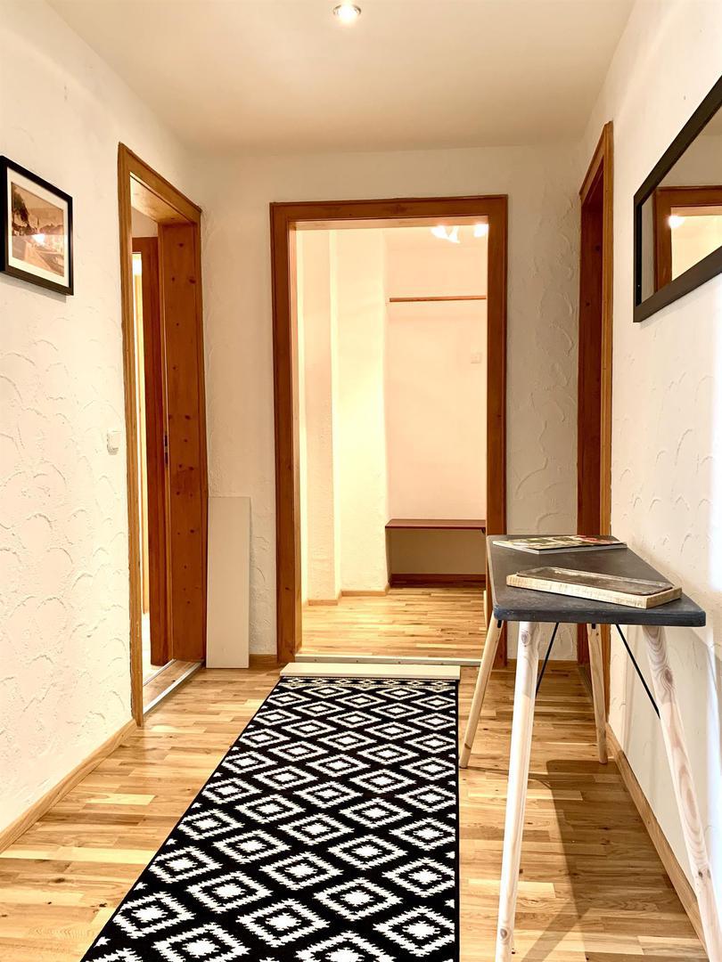 Apartment 102 ....... hat eine Größe von ca. 60qm mit einem Schlafzimmer und einem Wohnzimmer mit Essbereich - voll ausgestattete Küche (Herd mit Ofen, Kühlschrank mit Gefrierfach, Geschirrspüler und vieles mehr) - ausgestattet mit Holzparkett - in jedem Raum ein Flat TV.