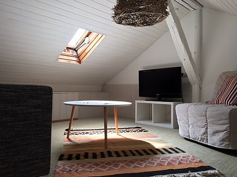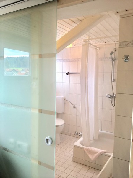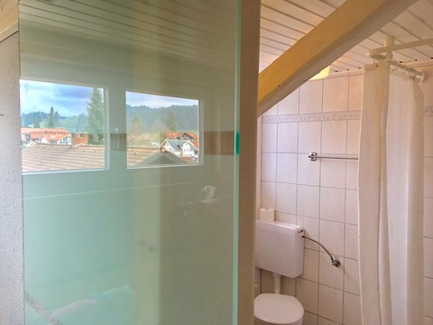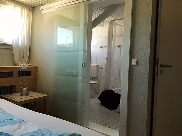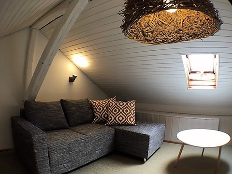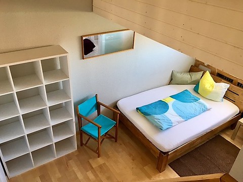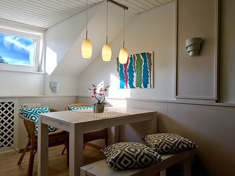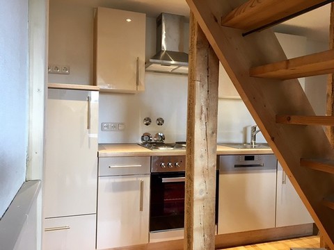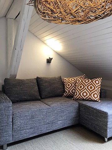 Das Studio - Maisonette im Dachgeschoss ist ca. 40 qm groß mit 2 getrennten Zimmern- Schlafzimmer mit Empore, Wohn- und Esszimmer mit voll eingerichteter Küchenzeile (Spülmaschine) - das Wohnzimmer befindet sich auf der Empore, Bad mit Dusche und WC (mit Fenster). Das Studio ist komplett möbliert!